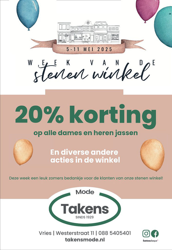 Deze week hebben wij van Takens Mode daarom als blijk van waardering een klein zomers bedankje en natuurlijk leuke acties in de winkel.