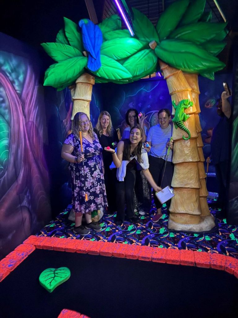 De activiteitencommissie van tafeltennisvereniging Vries organiseerde op zaterdagavond 6 september een avond glowgolf in Assen. Met een enthousiaste groep leden en aanhang werd de baan verkend, waarbij al snel duidelijk werd dat het spel niet alleen om techniek draait. Onverwachte hobbels en creatieve decoratie zorgden voor de nodige verrassingen en hilarische momenten. Er werd fanatiek gespeeld. Sommige ballen vlogen uit de baan, terwijl anderen juist in één keer in de hole belandden. De laatste baan werd gezamenlijk gespeeld, wat voor een vrolijke chaos zorgde. Uiteindelijk wist Anna de winst te behalen, net voor Wouter en Thomas. Na afloop werd er gezellig nagepraat met een drankje. Voor een deel van de groep kreeg de avond nog een vervolg op de bowlingbaan.  Al met al kan de activiteitencommissie terugkijken op een geslaagde start, die smaakt naar meer.