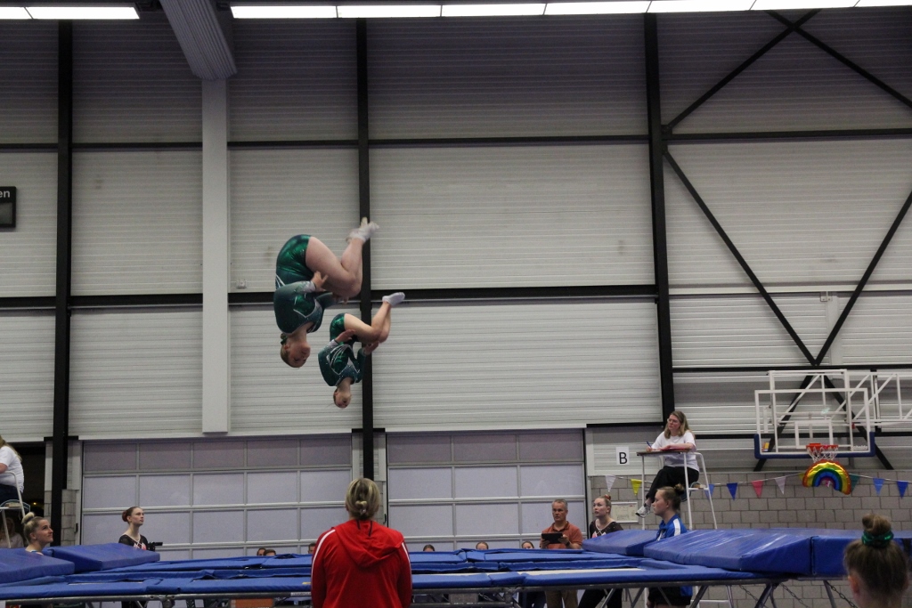 Zaterdag stond de laatste plaatsingswedstrijd gepland in Hoogezand voor de trampoline springers van Vako. De wedstrijd was nog heel spannend, of ze zich kunnen plaatsen voor de Nederlandse Kampioenschappen. Iedereen deed echt zijn best om weer zo mooi mogelijke oefeningen te springen. Er werden veel finale plaatsen behaald. In de finale staat er toch weer een bepaalde druk, spanning op, waar hier en daar wat kleine foutjes werden gemaakt. Toch werden er veel podium plaatsen behaald. Individueel 3de divisie werd bij Jeugd 1 door Hailey Stiekema de zilveren medaille behaald. In de categorie jeugd 2 was er zilver voor Jorine Vos en brons voor Kristel Geersing. In de 2de divisie werd er door Roza Sloot goud behaald, in de zelfde categorie behaalde Zara Sloot de bronzen medaille. Brons was er voor Noa Homan, jeugd 2, 2de divisie. Naast individueel werd er ook synchroon gesprongen. Alle 7 paren van Vako wisten de finale te behalen. Roza Sloot samen met Zara Sloot mochten bij de pupil/jeugd1 2de divisie de gouden medaille in ontvangst nemen. In de 3de divisie, pupil, was er voor Vera Pieters met Eline Lambers de bronzen medaille. Elin Hobma en Phylina Arends wisten de zilveren medaille te behalen in de categorie jeugd 1 . Voor Esmay Swart met Miranda Vos was er de zilveren medaille. De definitieve uitslag, wie zich heeft geplaats voor het NK, laat nog even op zich wachten, deze moet eerst berekend worden, gezien de 2 beste wedstrijden tellen.