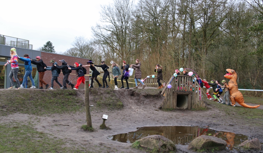 Binnen in de school werden in de verschillende lokalen groepjes gemaakt met leerlingen van verschillende leeftijden.