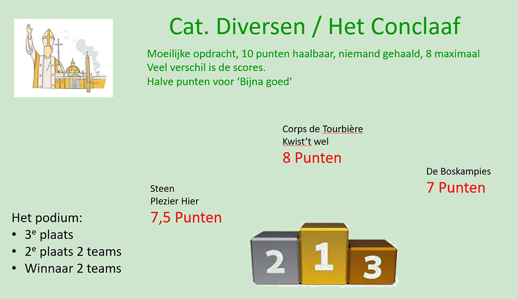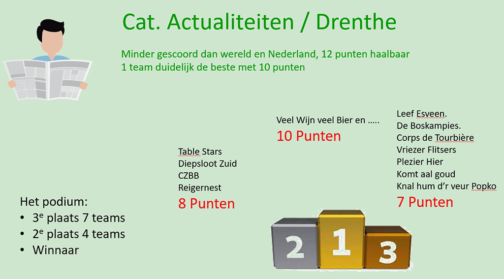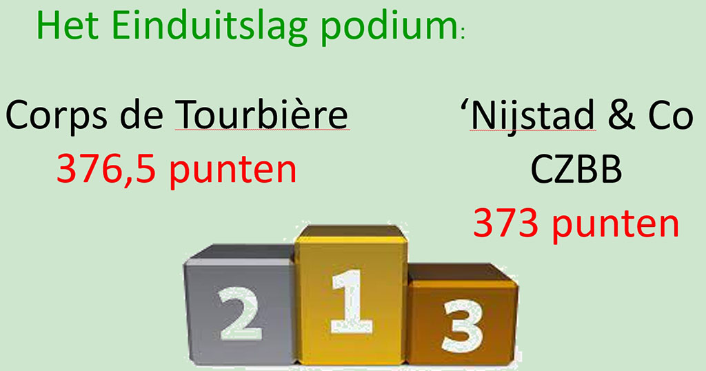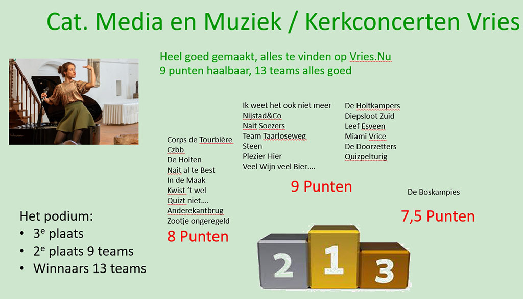 Na alle individuele scores door te hebben genomen en nog even een korte muzikale pauze voor een dorstlessend drankje was het eindelijk zover. De top drie!