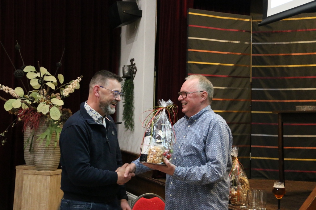 Een van de trouwe secondanten ontbrak ook. Roelie van Veen heeft vorige week tijdens gladheid haar enkel gebroken. Omdat haar herstel nog even zal duren, ging een beterschapskaartje rond, waarop alle aanwezigen hun naam konden zetten, om zo Roelie daarmee een hart onder de hart te steken.