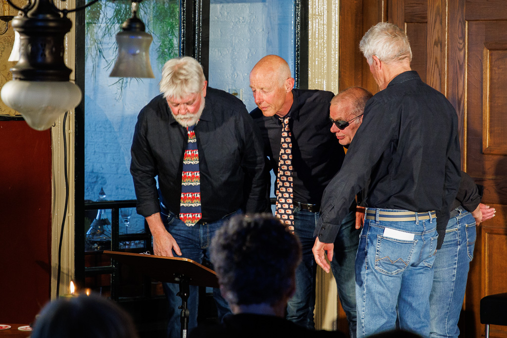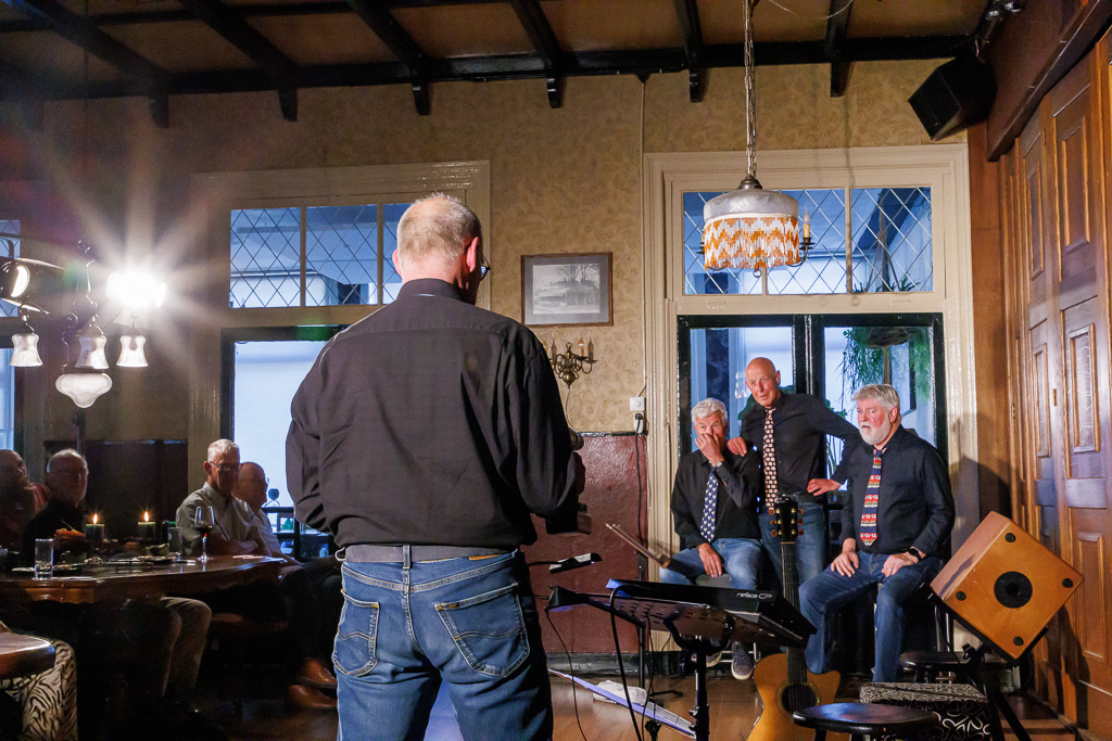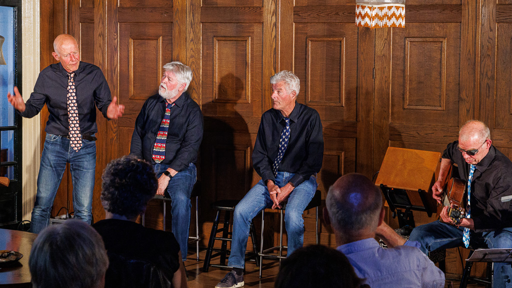 Gisteren was het zover; weer eens een heerlijke combinatiemiddag in Grand Café Onder de Linden. Lekker eten en drinken met een mooi podium optreden. Dit keer waren er de vier mannen van theatergroep ‘De Gastspeler’ die het optreden verzorgden. Onder de titel ‘Close Harmony’ behandelden Fred Star, Rob Tuijt, Rients Hofstra en (muziek) Hans Vesseur het wel en wee dat deze mannen in het dagelijks leven zoal bezig houdt. Met onderwerpen en eigentijdse zorgen over het milieu, klimaat, bollenteelt, dementie, autisme, de naderende ouderdom en dit alles met een lach en een traan. Ontroerend was het gesprek met de kleindochter. Ook de AI-act was sterk.