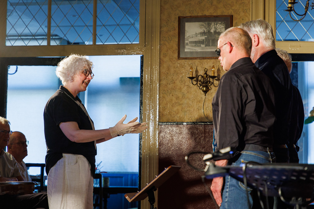 De rode draad in het stuk vormen de wekelijkse repetities van het koortje dat ze samen vormen. Tel daarbij op de bekende gastvrijheid en het heerlijke eten van Onder de Linden en de middag kan niet anders dan tot een heel geslaagde middag komen! Dat was het dan ook. De regie van het theaterstuk was in handen van Marian Vesseur.