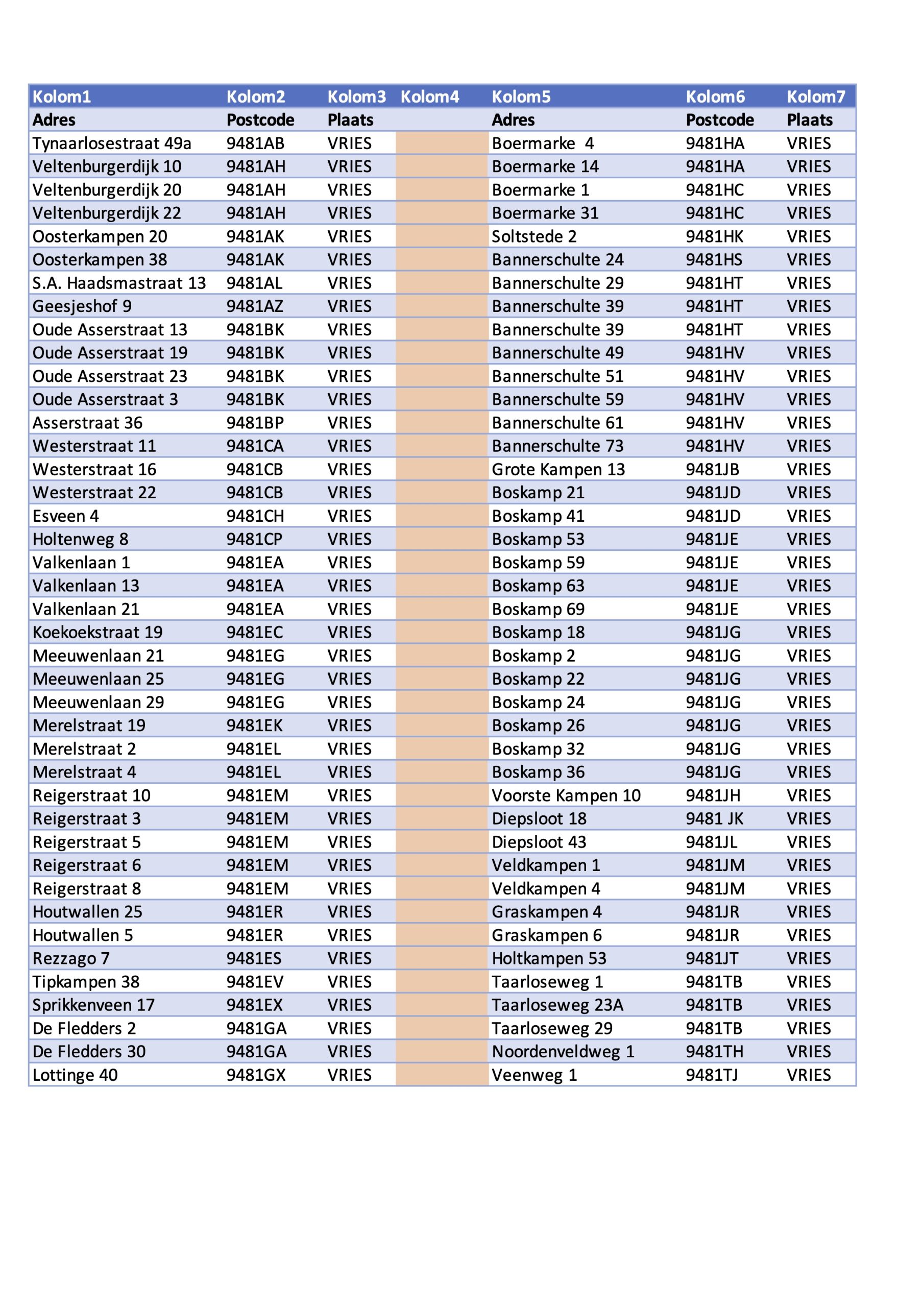 De kaart en adressen op papier zijn op 18 mei a.s. ook af te halen bij: