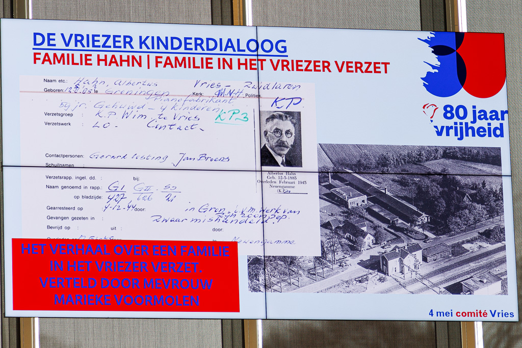 Mevrouw Marieke Voormolen was door het 4 mei comité Vries gevraagd om het bijzondere verhaal over de familie Hahn uit Tynaarlo te vertellen. De familie woonde net over het spoor naast hun pianofabriek in Tynaarlo toen op 10 mei 1940 de Duitsers Nederland binnen vielen.