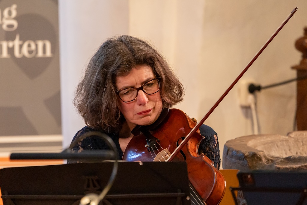 Altvioliste Ulrike deed de inleidingen met gezellige praatjes. Na de koffie was het: Fijn dat jullie er allemaal nog zijn. Ze lichtte toe over Brahms: Het stuk duurt een beetje lang misschien, maar als u aan het eind een wijsje hoort als in het begin, weet u dat het bijna is afgelopen. Even een snelle uitleg over deel 3, het Andantino – Presto non assai, ma con sentimento, hetgeen betekent: zeer snel maar toch niet al te snel, en met gevoel.