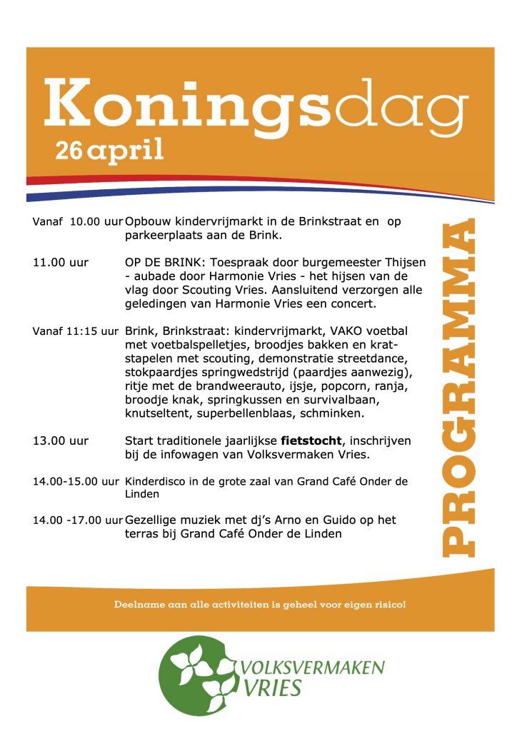 Iedereen is welkom – neem je buren, vrienden en familie mee voor een gemoedelijke Koningsdagviering in Vries!