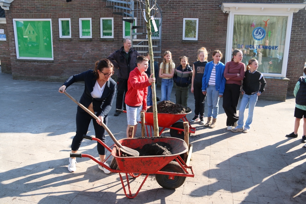 Vandaag, vrijdag 21 maart, ging het NK Tegelwippen van start. Wethouder duurzaamheid Jelbrich Peters opende de wedstrijd in de gemeente Tynaarlo. Zij heeft de eerste tegel weggehaald op het schoolplein van CKC de Holtenhoek in Vries. Ook leerlingen van groep 8 hielpen mee om tegels te wippen. De tegels maken plaats voor een nieuwe boom op het plein.