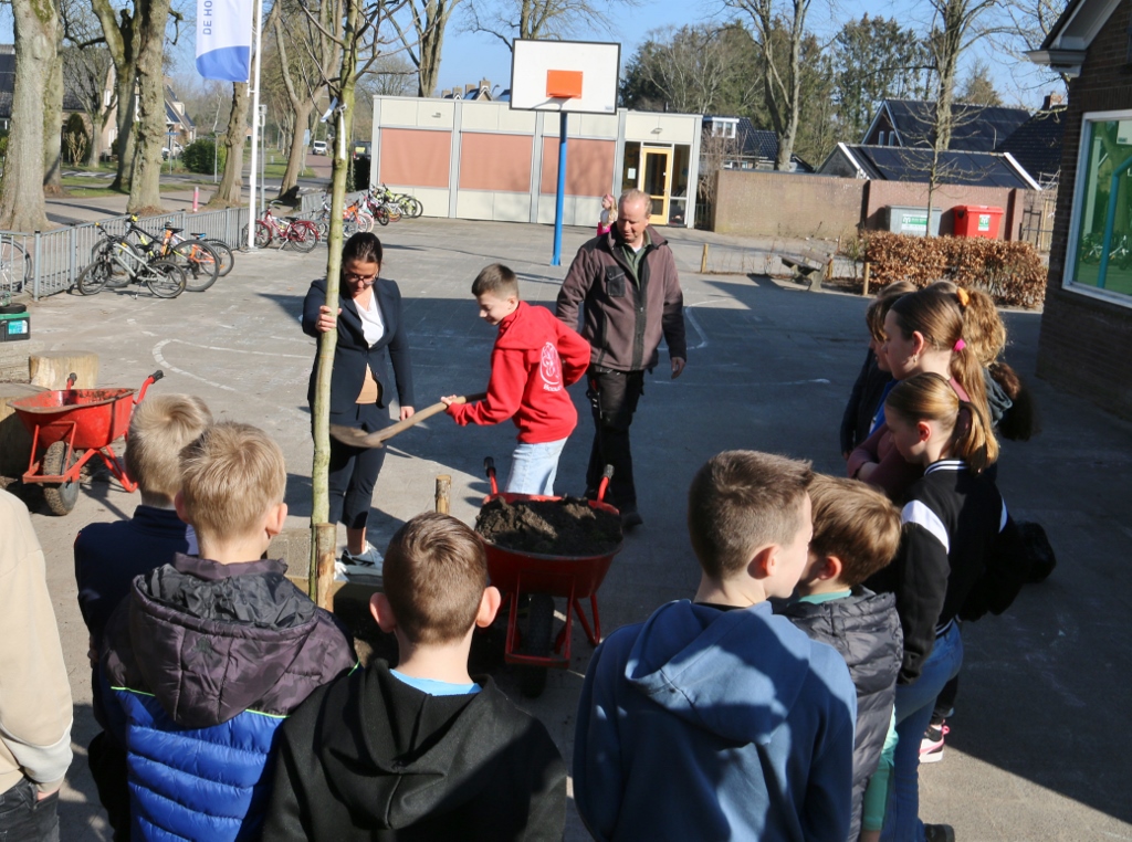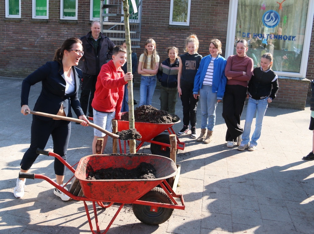 Eind vorig jaar is het plein van CKC de Holtenhoek opnieuw ingericht. Onder leiding van Sander Bosch Hoveniers is het plein samen met ouders, leerlingen en omwonenden en met de subsidie ‘Schoolpleinen Revolutie Drenthe’ verduurzaamd. Er zijn toen al meer dan 3000 tegels weggehaald en vervangen door planten en speelplekken. Nu is daar nog een walnotenboom aan toegevoegd. Deze boom werd geplant door wethouder Jelbrich Peters en leerling Ruben Jan en een aantal van zijn klasgenoten. Ruben Jan was in 2024 actief als een van de KinderKlimaatburgemeesters in de gemeente Tynaarlo. Hij zette zich in onder andere in voor meer groene schoolpleinen in onze gemeente.
