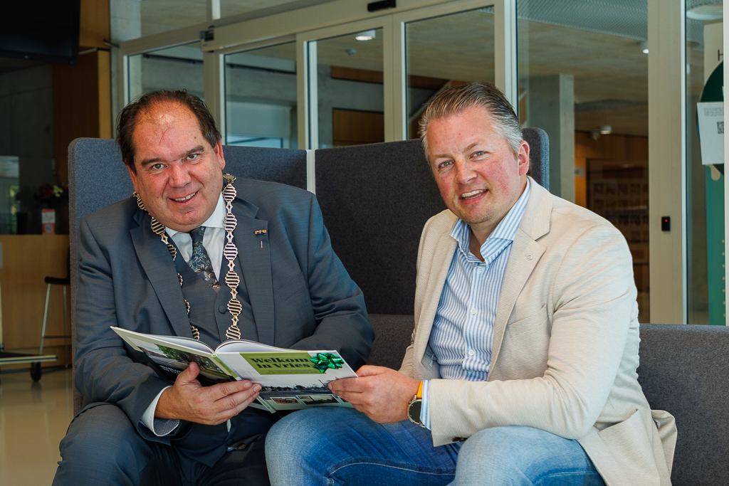 Gisteren ontving burgemeester Marcel Thijsen het historische verzamelboek ‘Welkom in Vries e.o.”. Daarvoor was de eigenaar van Plus Koetsier, Henk Rik Koetsier naar het gemeentehuis gekomen.
