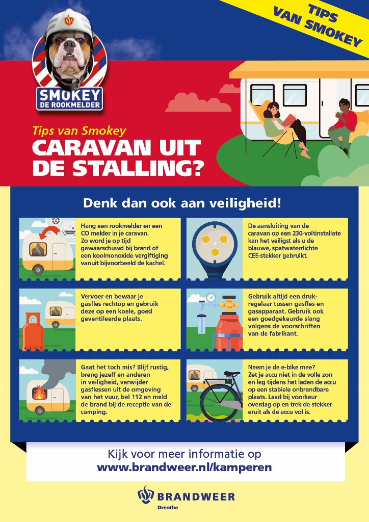 Als je gaat kamperen, doe dit dan veilig. In huis heb je misschien al een goed vluchtplan, rookmelder(s) en een blusdeken. Het is belangrijk om ook dan de brandveiligheid in de gaten te houden in de caravan/camper.