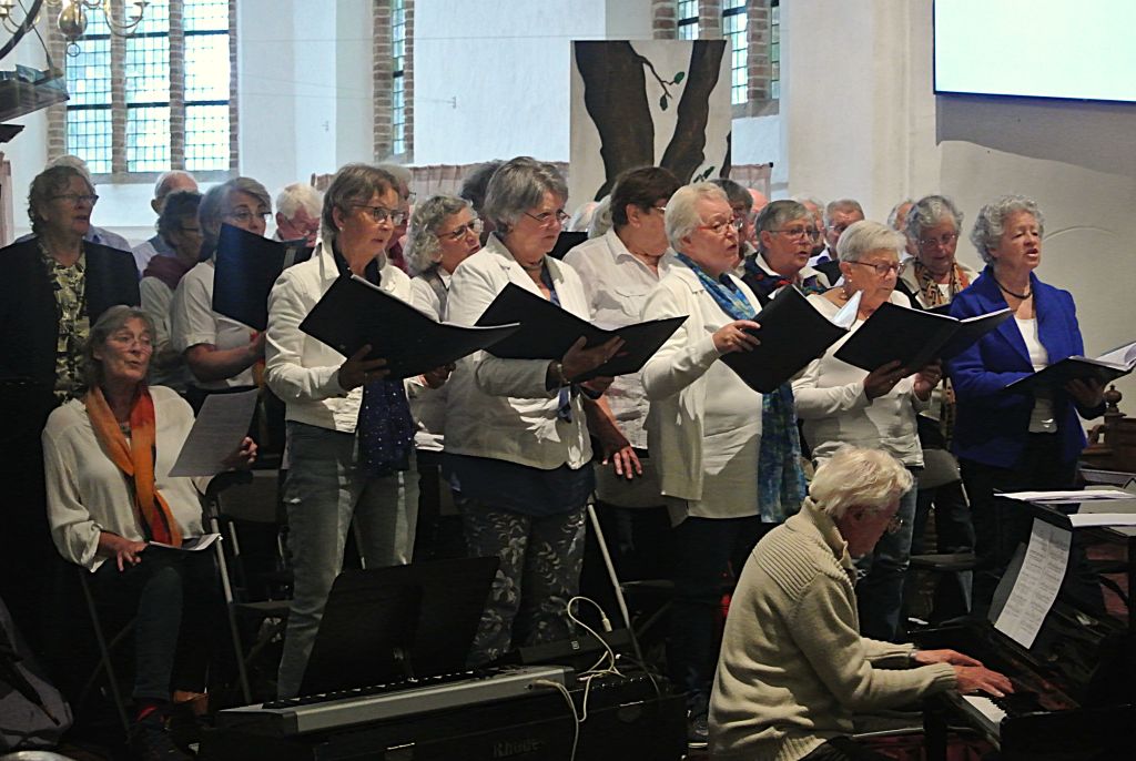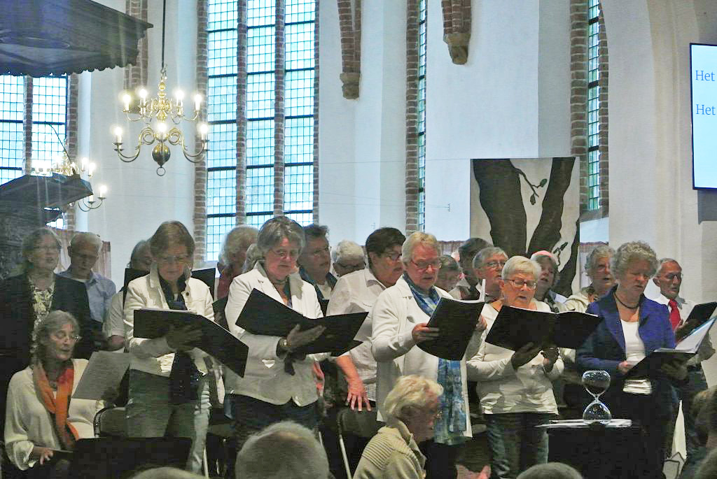 Alles werd muzikaal omlijst door een groot gelegenheidskoor, dat begeleid werd door een blazersensemble en pianist. Allen onder de enthousiaste leiding van Sietse Hamersma (van de kroeg).