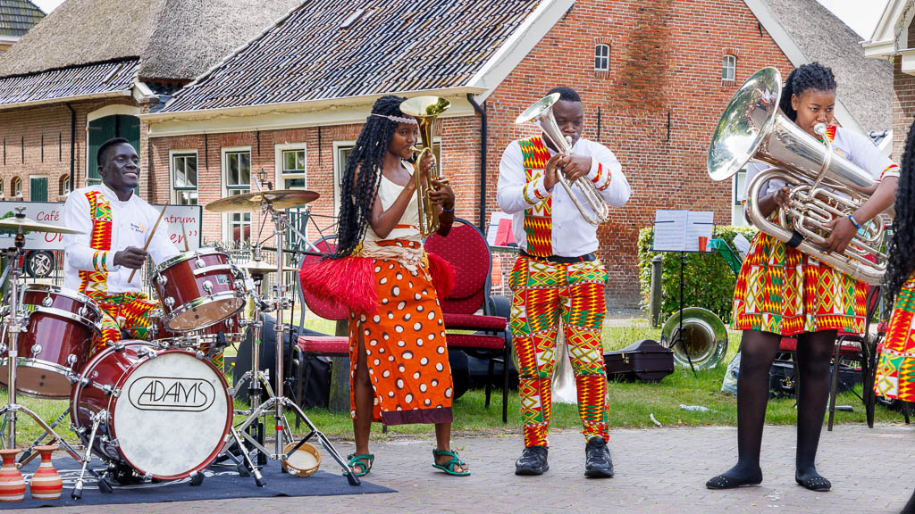 Vandaag vond het plaats en dit was de onlangs gepubliceerde aankondiging hiervan: ‘Grand Café Onder de Linden presenteert een “Uniek concert door een unieke groep muzikanten uit Oeganda en Zwitserland”. Brass for Africa en Ensemble de Cuivres Euponia spelen op zondag 15 juni in Vries’.
