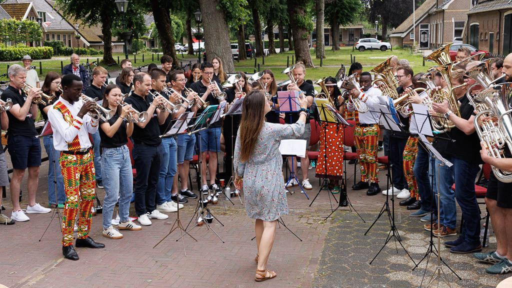 De afgelopen week vond in Groningen op diverse locaties ‘Groningen Brass Experience’ plaats. Een muziek evenement met deelnemers uit binnen en buitenland. Daarin is ook opgenomen het Dutch Open Brass Band Championship in SPOT/Oosterpoort. Dit trekt toporkesten uit binnen- en buitenland. Zo ook het orkest uit Zwitserland: Ensemble de Cuivres. Een toporkest en dat was vandaag ook in Vries heel goed te horen. Een groep enthousiaste muzikanten die werkelijk het ene na het andere mooie nummer ten gehore brachten.