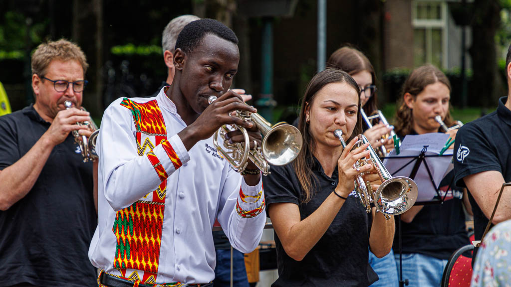 Bijzonder was daarnaast de groep van 8 muzikanten uit Oeganda: Brass from Africa. Een groep bestaande uit muziekdocenten die zowel Oeganda als Ruanda en Liberia doorkruizen om daar muziekles aan kinderen te verzorgen. Een paar van de muzikanten vertelden dat het zulk dankbaar werk is om kinderen die vaak onder moeilijke omstandigheden opgroeien, niet kunnen schrijven of lezen, door middel van het muziekonderwijs dichter bij elkaar te brengen. Daarbij het plezier in het leven en hoop voor de toekomst terug geven. ‘Het geeft mij meer plezier dan het regulier les geven op een school’ zei een van hen. Deze 8 muzikanten speelden, dansten en zongen zo enthousiast en mooi dat het optreden op veel van de aanwezigen een blijvende indruk heeft achter gelaten.