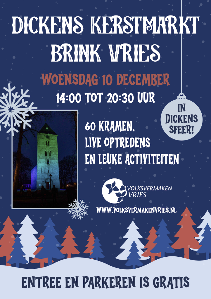 De kerstmarkt in Vries, elk jaar op een woensdag, is inmiddels een regionale traditie geworden. De markt is gesitueerd op de authentieke Brink rondom de monumentale Bonifatiuskerk en wordt prachtig verlicht door honderden lichtjes. Naast vele kramen met verschillende lekkernijen en kerst-hebbedingen zijn er leuke activiteiten zoals broodjes bakken bij het vuur. De fraai verlichte kerk vormt het middelpunt van de markt met tussen 16.00 – 20.30 uur optredens van Vocaal Vries, Harmonie Vries, Malletband Vries.  Vanaf 14.30 uur is er een draaiorgeltje op de markt aanwezig.
