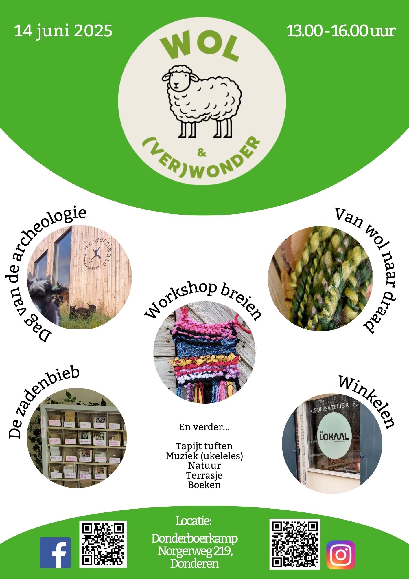 Op 14 juni 2025 is het World Wide Knit in Public Day’ (WWKIPDAY). Deze internationale dag laat zien hoe leuk het is om zelf bijvoorbeeld kleding te breien én dat er door mensen van allerlei leeftijden en achtergronden met veel plezier wordt gebreid. Daarom organiseert Wolstudio Haren op deze dag, i.s.m. partners, het festival Wol & (ver)Wonder. Tussen 13.00 en 16.00 verandert het Donderboerkamp in Donderen in een prachtige evenementen-locatie, waar wol, natuur en creativiteit samenkomen.